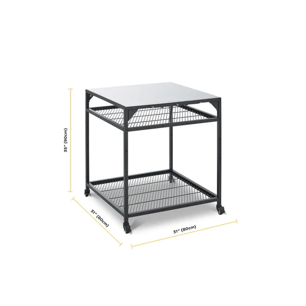 Our tables are made of robust powder-coated carbon steel. They also feature two height-adjustable shelves and built-in hooks for your Ooni peels and accessories. Plus, the two lockable castors will keep your table steady while you cook.